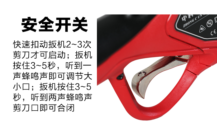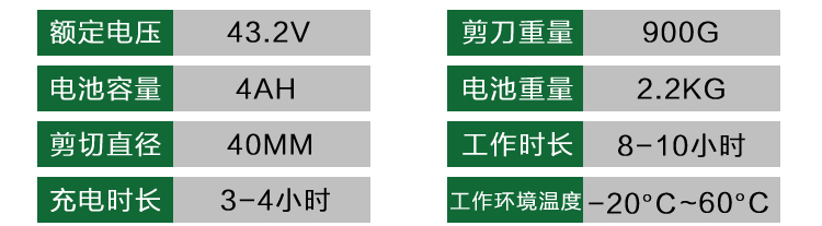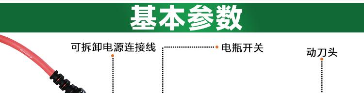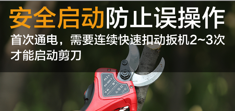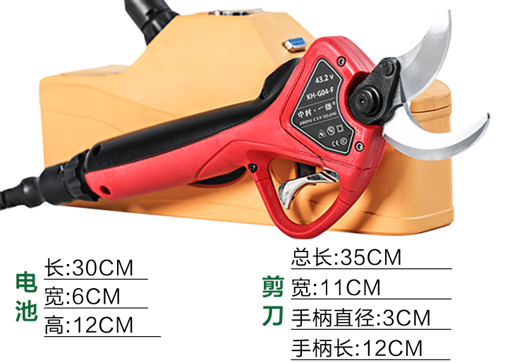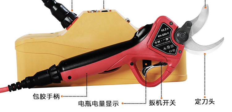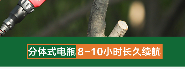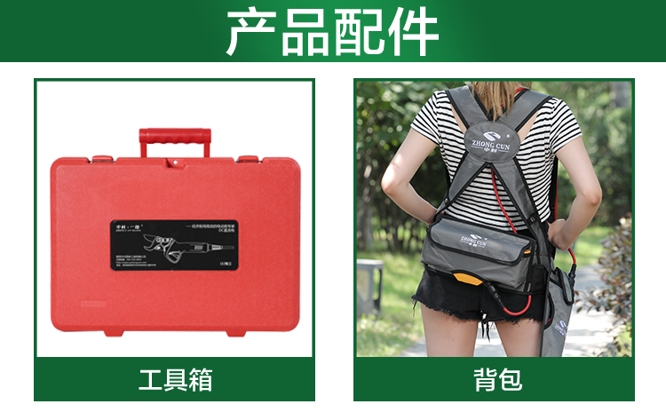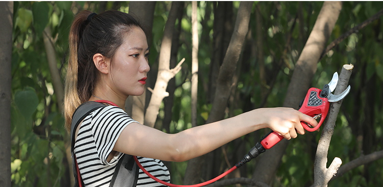 产品特点:电瓶采用便携背包设计和电瓶电量显示设计,工作轻松方便,实用于40MM的硬树枝剪切,代替传统手工剪,减轻劳动力和劳动成本。