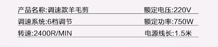 产品名称:中村调速款羊毛剪 额定电压:220V
