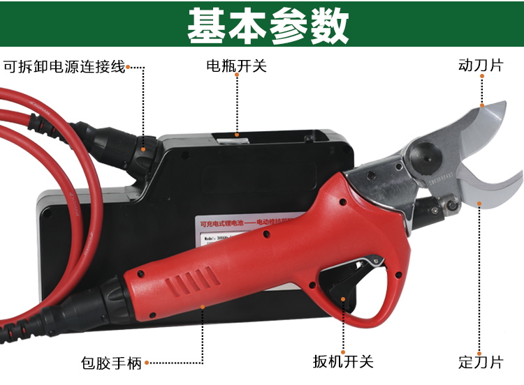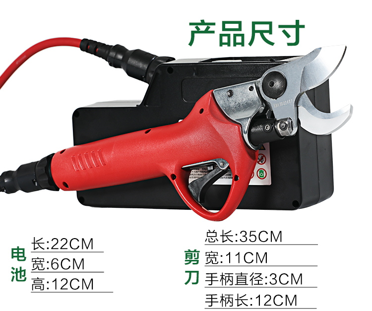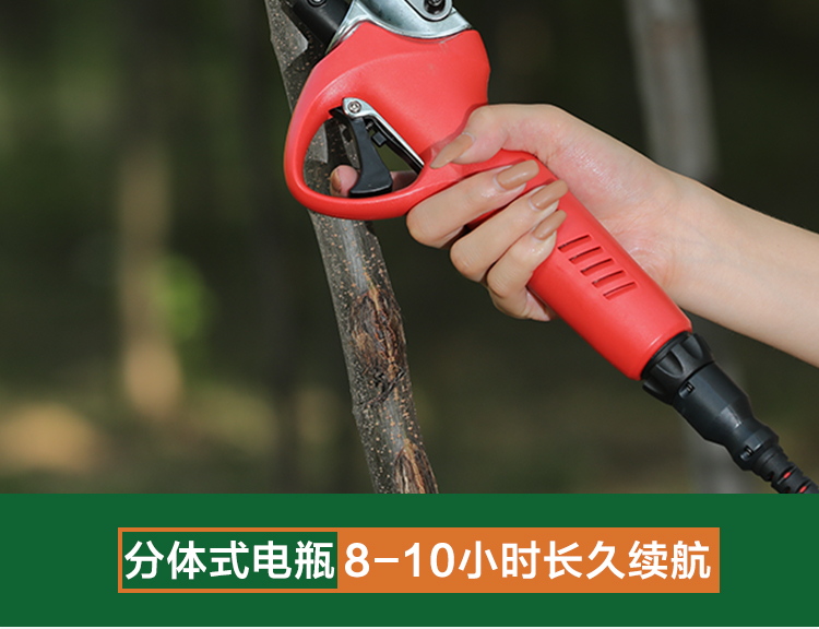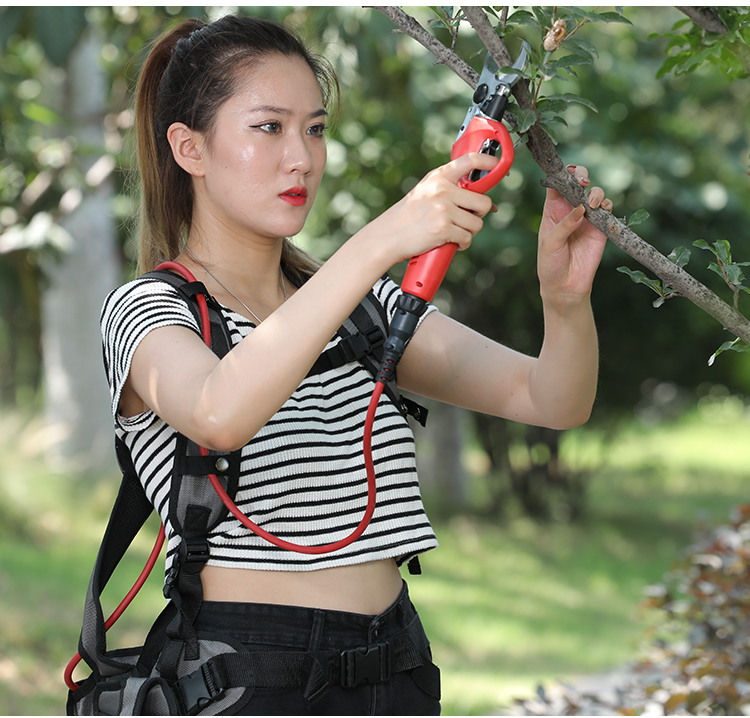 产品特点:电瓶采用便携背包设计,工作轻松方便,实用于30MM的软树枝剪切,代替传统手工剪,减轻劳动力和劳动成本。